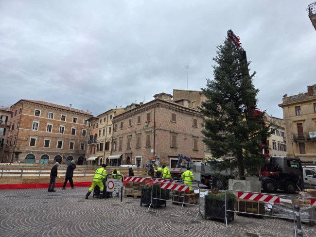 Stamattina è stato issato l’albero di Natale in piazza Boccolino ad Osimo. Un abete alto circa 13 metri proveniente da un vivaio della nostra zona. «Sabato prossimo in piazza Boccolino alle 17,30 è in programma l’accensione delle luminarie e dell’albero, poi concerto della Civica Scuola di Musica, quindi l’apertura della grande pista di pattinaggio e alle 19 l’inaugurazione del presepe nell’atrio comunale – ricorda in una nota il Comune – Osimo Servizi ha svolto le operazioni di montaggio e che nei prossimi giorni provvederà ad addobbarlo. Le luminarie che sono state quasi tutte installate, e regaleranno un bel colpo d’occhio stile cielo stellato in piazza. Al contempo i manutentori di Casa Grimani Buttari stanno realizzando il presepe nell’atrio comunale, come avveniva fino a qualche anno fa».