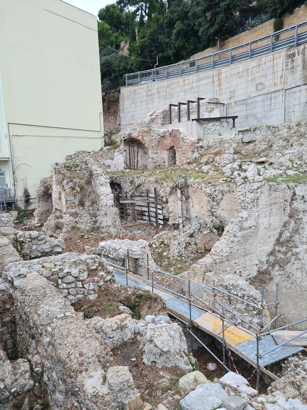Le attività in corso, precedute dalla rimozione della vegetazione infestante, comprendono lo smontaggio dei tavolati lignei e delle strutture di contenimento in tubi e giunti, posizionati in passato a protezione dei saggi di scavo, il reinterro controllato di alcune aree, la verifica delle puntellature esistenti e la messa in sicurezza delle strutture. I lavori hanno inoltre lo scopo di creare condizioni operative sicure e stabili per le successive fasi di documentazione, rilievo e analisi tecnica, indispensabili alla definizione di un progetto di valorizzazione più ampio che la Soprintendenza intende portare avanti nei prossimi anni in collaborazione con le istituzioni territoriali.
