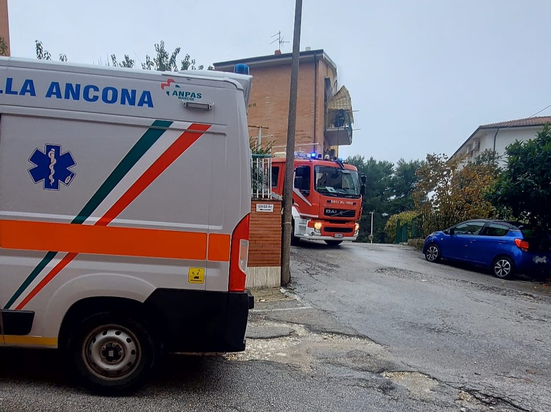 Intervento in via Cingoli, in zona Grazie ad Ancona, poco dopo le 14 da parte di vigili del fuoco e 118.