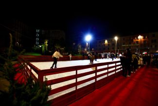 La pista di pattinaggio sul ghiaccio allestita in piazza Pertini a Natale 2024