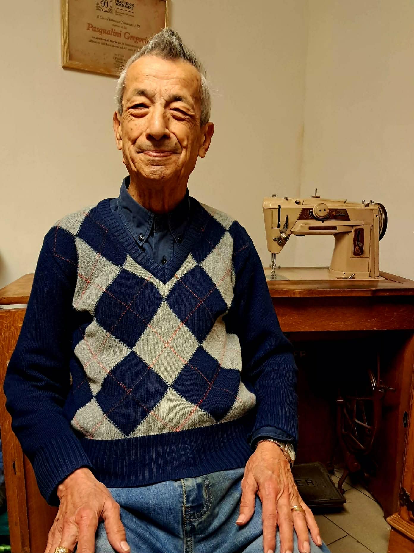 Affezionato al lavoro, Gregorio Pasqualini si reca tutti i giorni nella bottega, diventata ormai la sua seconda casa. Nulla di strano se non la sua età. Ha infatti 92 anni.