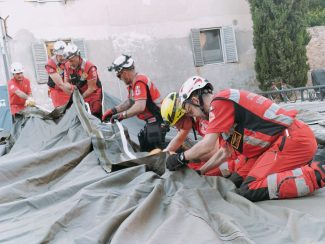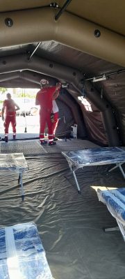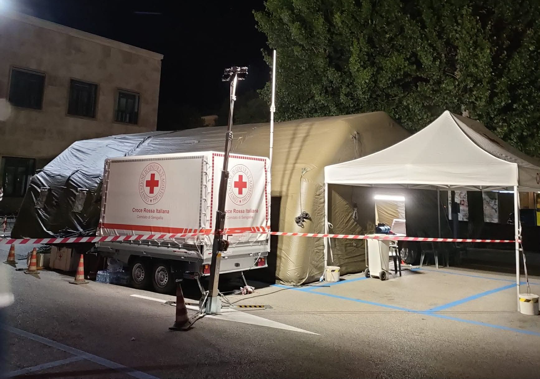Una volta dato l’allarme e ultimate le scene dei feriti sono entrati in azione gli operatori sanitari e la squadra SMTS (soccorsi con mezzi e tecniche speciali) del Comitato. Il personale sanitario è intervenuto adattando le proprie abilità alle situazioni ricreate, dalla ferita semplice a quella complessa, alla crisi di panico, all’ustione, alle fratture varie, alla ricerca di un disperso fino alla constatazione di tre decessi. L’esercitazione è proseguita senza sosta per tutta la nottata/mattinata, all’esterno del capannone industriale dove è stata allestita una postazione medica di primo intervento. tramite una tenda pneumatica appositamente attrezzata con all’interno brande, attrezzature sanitarie e tutto ciò che occorre in questi casi. L’attività in Comitato non è stata preannunciata. I volontari sapevano di partecipare a un’esercitazione senza conoscere il tipo d’emergenza da affrontare. Questo per fare in modo che la reazione fosse la più naturale possibile, per testare la preparazione. Tutto si è svolto come accadrebbe nella realtà con un allarme dato alle 23,50. «Questo particolare modo di realizzare le esercitazioni a sorpresa – spiega Andrea Marconi, presidente del Comitato Cri Senigallia – permette di testare realmente le disponibilità del personale, i tempi di reazione e di intervento in scenari anche lontani da Senigallia». Alla simulazione hanno aderito circa 35 operatori, tra truccatori, simulatori, volontari e sanitari. Sono state utilizzate tre ambulanze, vari mezzi di trasporto persone, logistici, una tenda pneumatica, una torre faro e gruppi elettrogeni, oltre altre attrezzature varie.