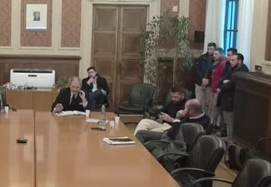 Un momento della seduta della Commissione referendaria, Simone Pizzi è il secondo seduto in alto da sinistra