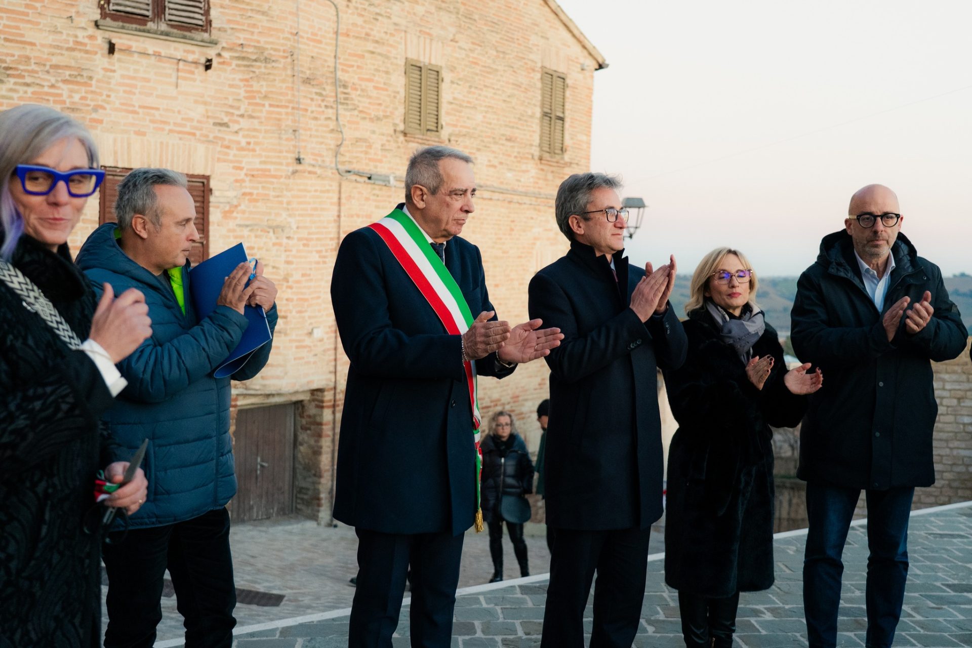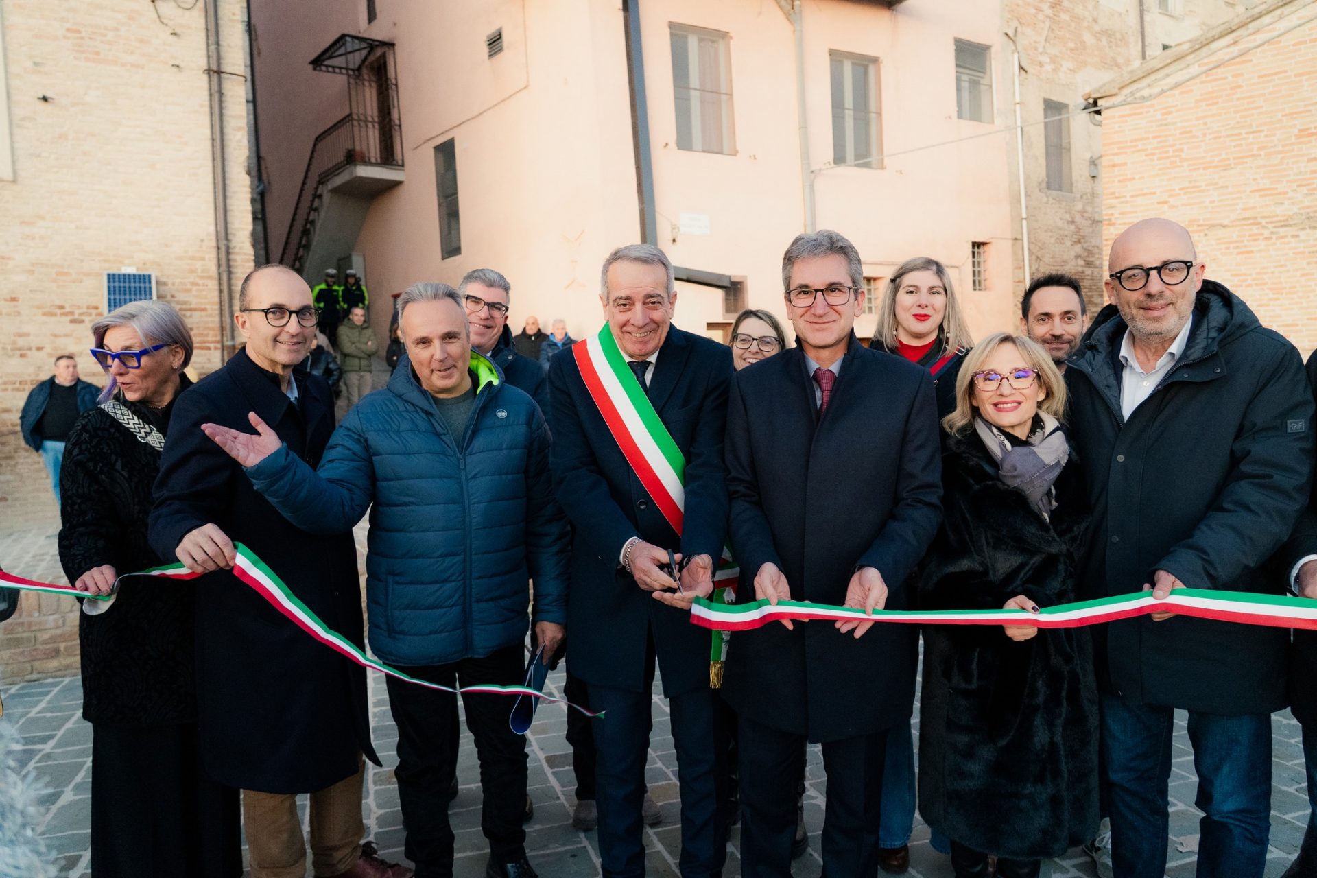 Un momento della cerimonia a Corinaldo con il taglio del nastro