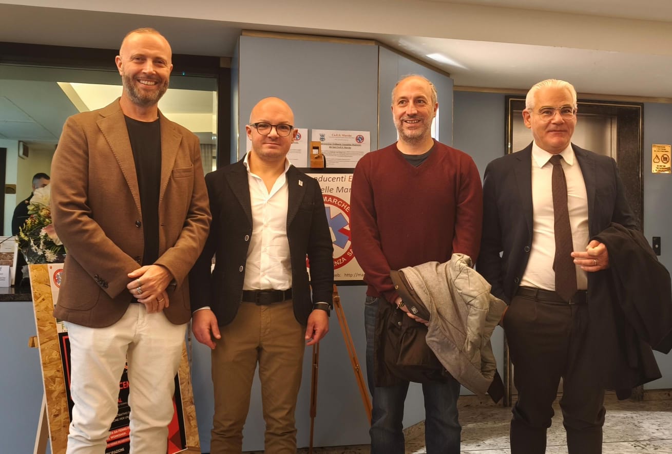 A partire da Sinistra Presidente Nazionale Co.E.S Italia Daniele Orletti, Presidente Regionale Co.E.S Marche Stefano Marconi, l’Assessore alla Sanità Regione Marche Paolo Calcinaro e il Consigliere Regionale Pierpaolo Borroni