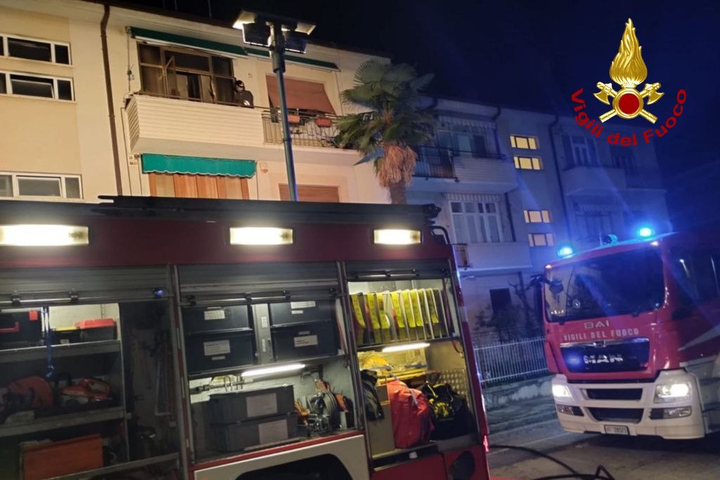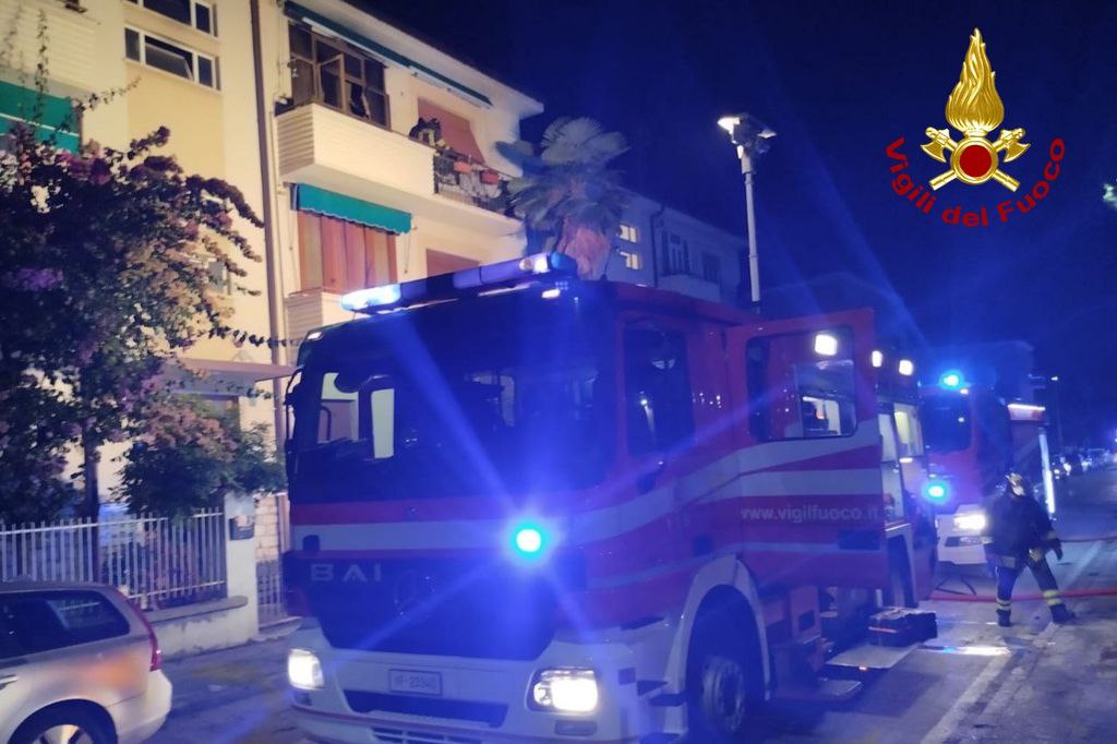 L’intervento dei vigili del fuoco di Jesi nell’appartamento di via Radicioni dove era scoppiato un incendio e dove è stato recuperato il gattino