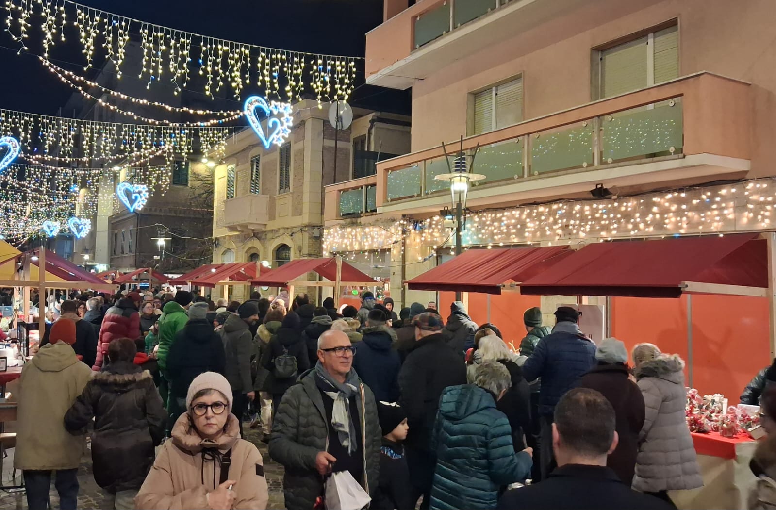 Falconara Marittima ha dato ufficialmente il via oggi, sabato 6 dicembre, alle festività natalizie con un susseguirsi di eventi che, fin dal mattino, hanno animato il centro cittadino e richiamato un grande pubblico. La città si è accesa di luci, profumi e spettacoli, inaugurando il cartellone natalizio con un’atmosfera calorosa e partecipata. Dalle 10 alle 20, l’isola pedonale di via Bixio è stata il cuore pulsante della manifestazione, ospitando “Le Delizie dei Maestri Pasticcieri”, una rassegna che ha portato a Falconara i migliori pasticcieri della provincia. Le loro specialità dolci e salate sono state protagoniste di una giornata ricca di degustazioni: tantissimi cittadini e visitatori hanno affollato gli stand per assaggiare e acquistare proposte artigianali di grande qualità, trasformando la via in un vivace percorso del gusto. Alle 17, la Sala Mercato si è riempita per il cooking show “Armonie insolite”, un esperimento culinario che ha incuriosito e conquistato il pubblico. L’incontro tra pasta fresca, cioccolato e gelato ha dato vita a una performance gastronomica originale, capace di sorprendere gli spettatori con abbinamenti inediti e armonie di sapori inattese.