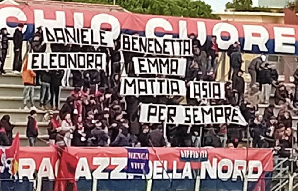 E’ di ieri anche l’omaggio dei Ragazzi della Nord, che allo stadio Bianchelli hanno esposto degli striscioni, ciascuno con uno dei nome delle sei vittime, e un settimo con la scritta: per sempre.