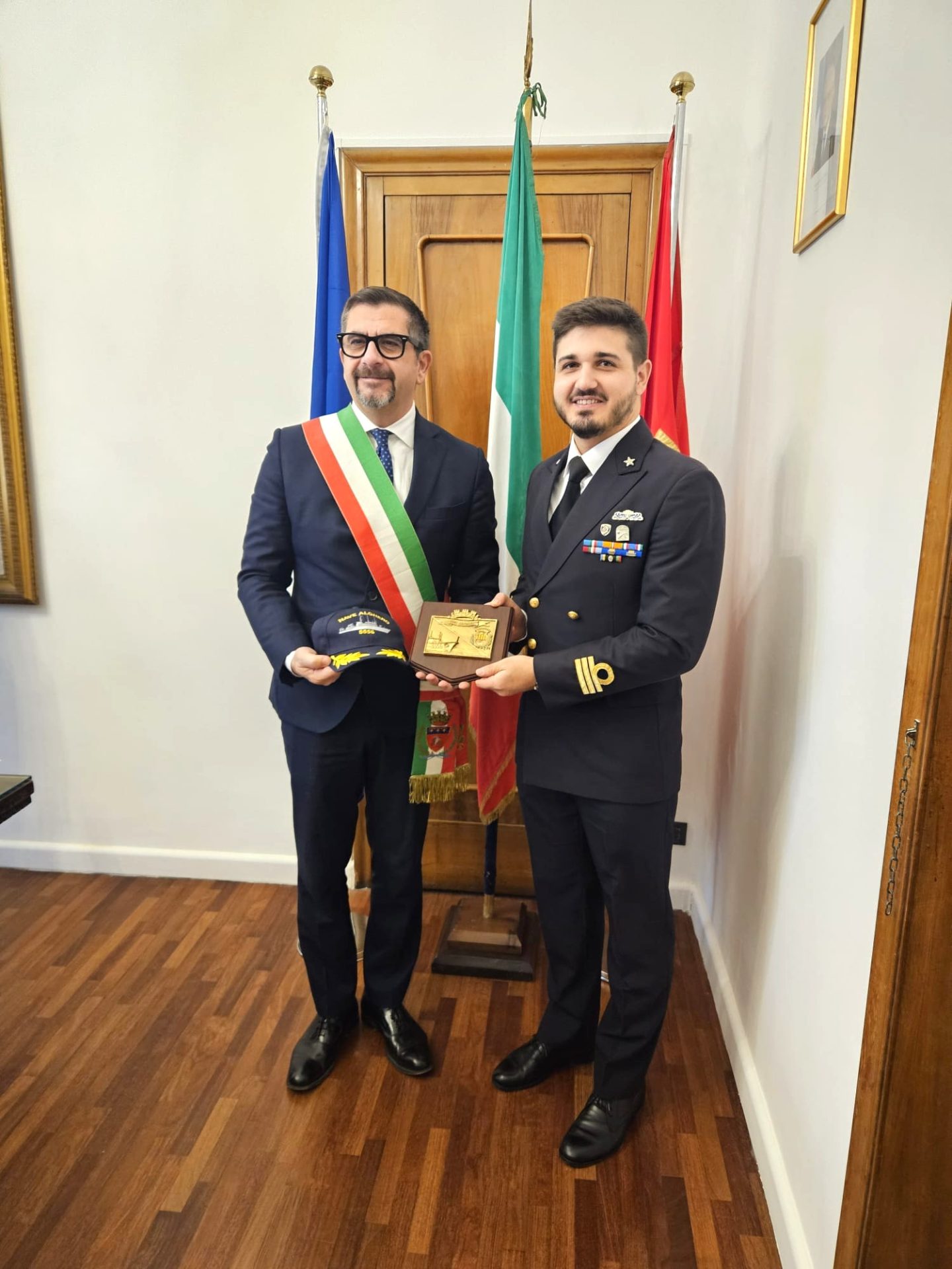 Il sindaco di Ancona, Daniele Silvetti ha ricevuto questa mattina il tenente di vascello Edoardo Bartolini, comandante di Nave Alghero della Marina Militare Italiana ormeggiata nel porto dorico. Durante la visita di saluto istituzionale al primo cittadino il Comandante ha ricordato come Nave Alghero sia in missione attualmente nell’Adriatico per garantire la sicurezza dei fondali marini con la protezione delle infrastrutture critiche nazionali e la salvaguardia dell’ambiente marittimo. Nave Alghero a breve si trasferirà verso l’Adriatico meridionale per continuare la sua missione. Nel porgere il benvenuto della città all’equipaggio dell’Alghero, il sindaco Silvetti ha ricordato gli stretti rapporti di collaborazione che legano Ancona alla Marina Militare della quale ospita anche il Comando Scuole.
