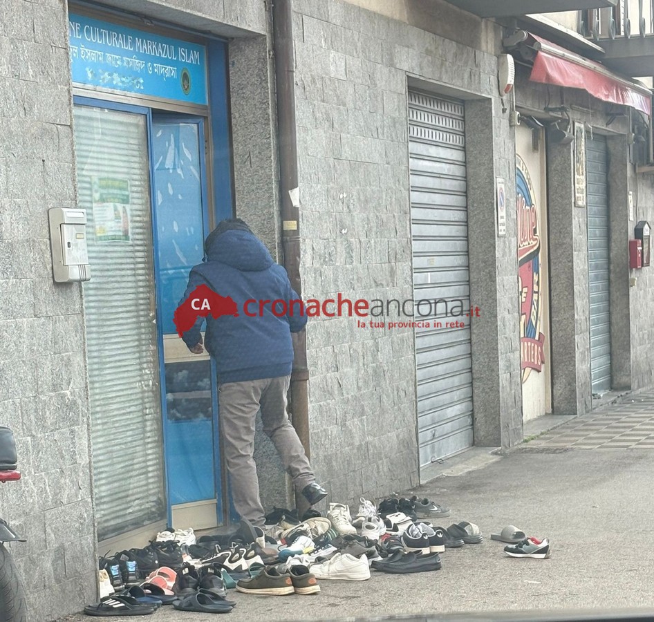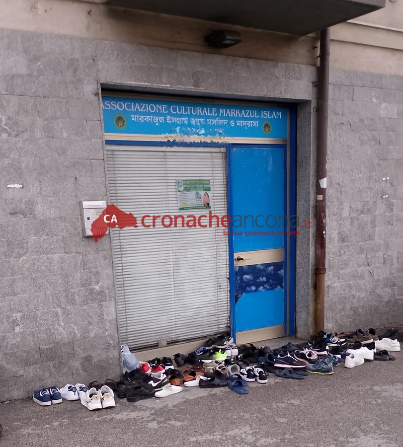 Scarpe e ciabatte che vengono lasciate all’esterno di un’associazione culturale dove in tanti vanno a pregare. «Scarpe che almeno potrebbero essere posizionate all’interno di armadietti. Anche per rispetto della gente che passa».