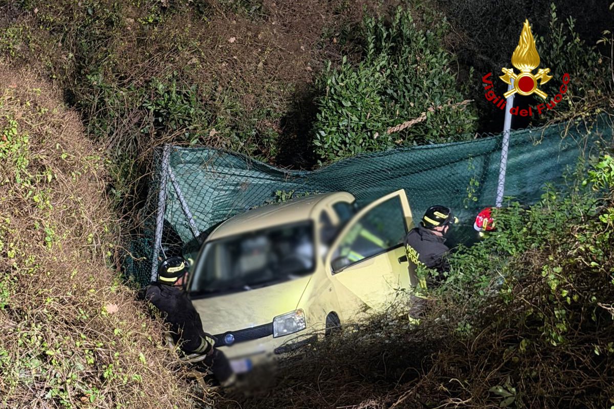 Poco prima delle 17, in via dei Frati, un’auto alimentata a Gpl è finita in una scarpata di circa 15 metri.