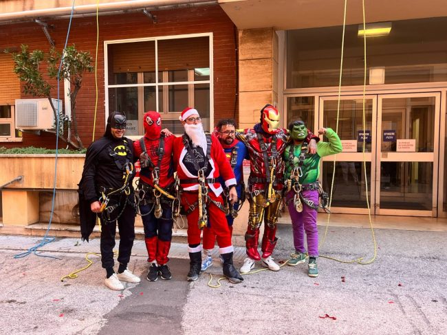 Batman, Spiderman, Ironman, Hulk e gli altri eroi si sono calati dal tetto del Dipartimento Materno Infantile dell’Azienda Ospedaliero Universitaria delle Marche.