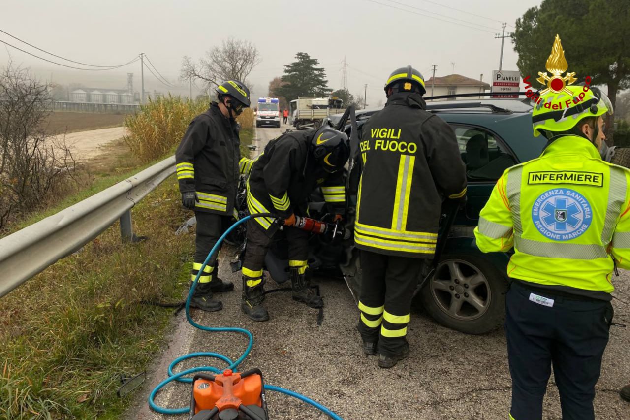 La squadra vigili del fuoco di Senigallia, giunta sul luogo, ha provveduto ad estrarre le persone rimaste intrappolate all’interno dell’autovettura, affidandole poi alle cure del personale sanitario del 118.