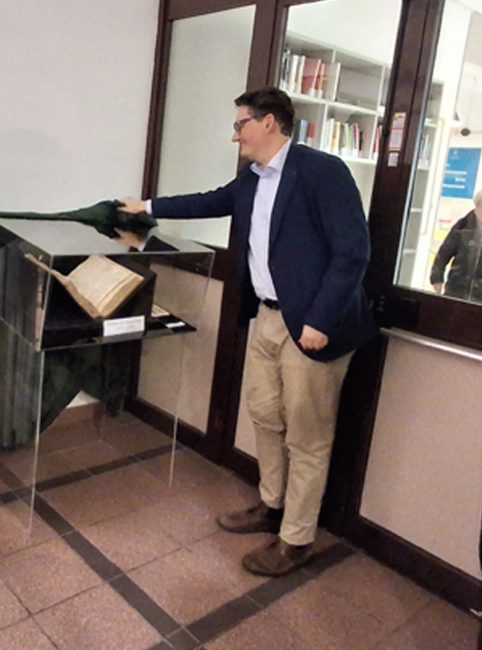 Elemento distintivo dell’intervento è stato l’utilizzo di nanotecnologie all’avanguardia, in particolare l’applicazione di nanocollagene, impiegato per il recupero della coperta in cuoio, fortemente danneggiata. Il nanocollagene, fornito dall’ateneo romano grazie a una convenzione con la Soprintendenza, ha reso possibile un intervento di assoluta eccellenza. Il restauro è stato preceduto da un’attenta diagnostica analitica, fondamentale per comprendere lo stato di conservazione del volume e affiancato da un intervento di digitalizzazione avanzata, realizzato con scanner planetario, che consente la consultazione del documento senza compromettere l’integrità dell’originale. Al termine della presentazione del restauro è stata scoperta la teca in cui il Libro del Camerlengo sarà conservato, in un ambiente che ne consente la perfetta conservazione. Il volume resterà esposto nella Biblioteca comunale di Falconara, rendendo nuovamente accessibile alla città un tassello fondamentale della propria memoria storica.