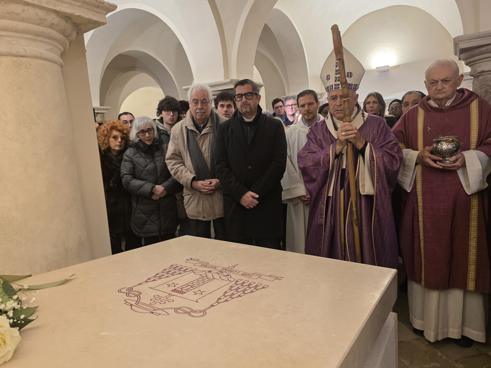 Un momento della benedizione della tomba del cardinale Edoardo Menichelli nella Cripta delle Lacrime nella cattedrale di San Ciriaco ad Ancona