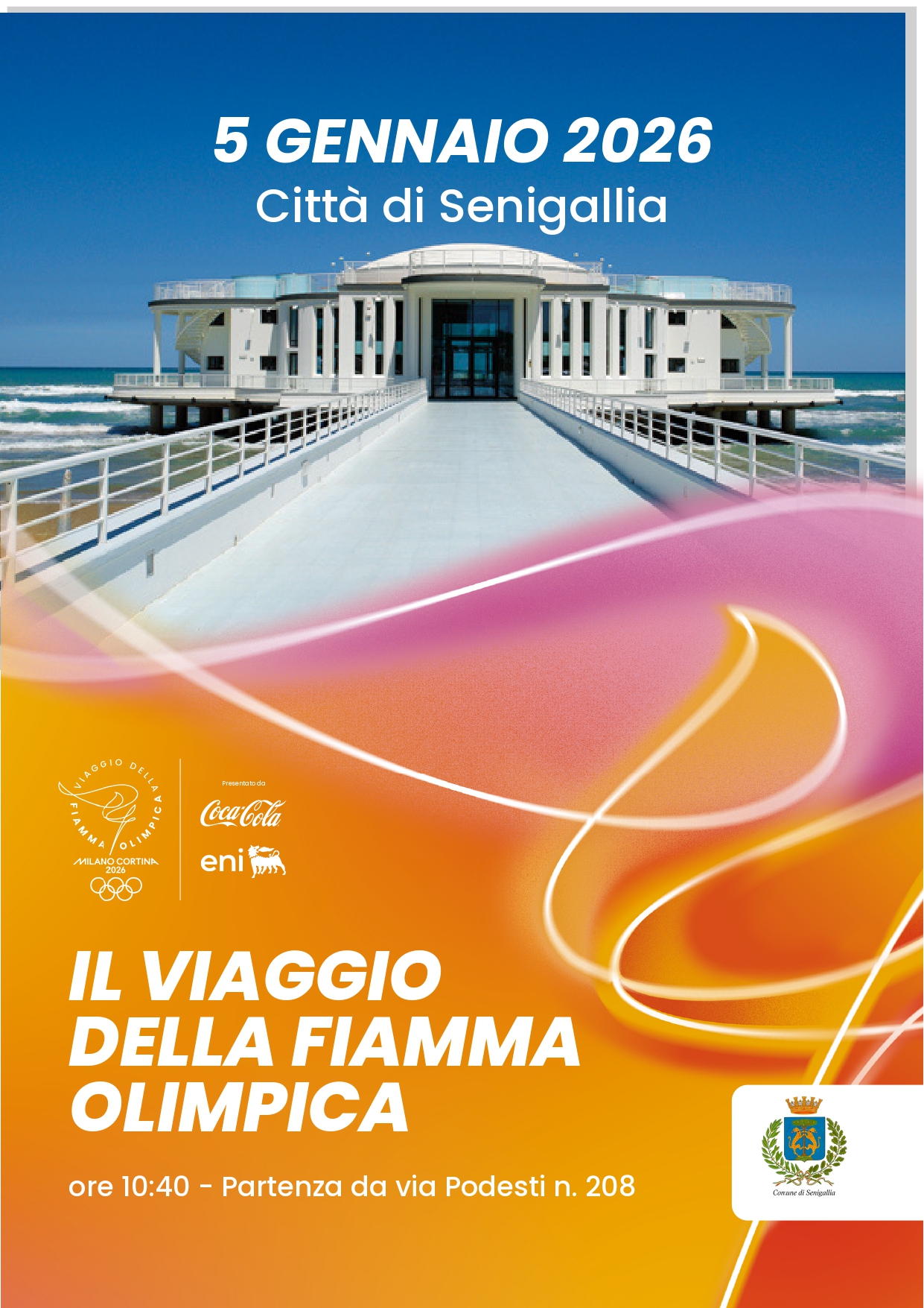 Arriva domani, 5 gennaio, la Fiamma Olimpica a Senigallia e, in occasione del passaggio, la viabilità verrà modificata. Il percorso prevede la partenza alle 10:40 dal civico 208 di via Podesti e proseguirà su viale Leopardi, via Pisacane, Piazza Garibaldi, via Portici Ercolani, via Perilli fino a via Raffaello Sanzio. Le chiusure, dalle 10 fino alle 11.45 circa, prevedono la sospensione temporanea della circolazione, per circa 20 minuti in ciascuno dei seguenti punti del percorso: via Podesti, dall’altezza circa dell’accesso al polo scolastico Marchetti al viale 4 Novembre; viale 4 Novembre (sottopasso); piazzale della Libertà; viale Leopardi, da viale Bonopera a via Pisacane; via Pisacane; via Maierini, da via Pisacane a piazza Garibaldi; piazza Garibaldi; via Armellini da piazza Garibaldi a via Pisacane; Portici Ercolani; via Perilli e via Raffaello Sanzio fino all’altezza dell’intersezione con via Brandani.