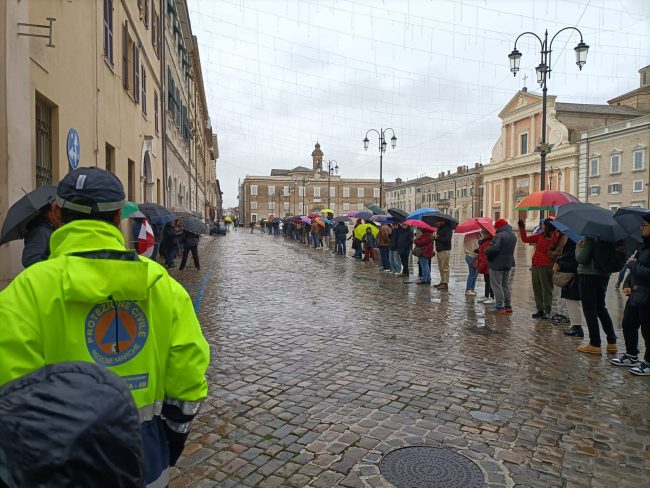 SENIGALLIA - I cittadini hanno atteso i tedofori con gli ombrelli aperti, durante il loro passaggio da via Podesti a via Raffaello Sanzio con tappa anche nel centro storico