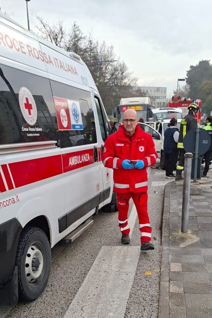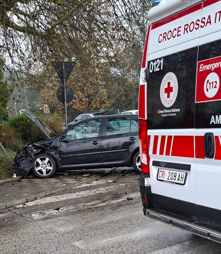 ANCONA – L’incidente stamattina in piazza Salvo d'Acquisto, sul posto le ambulanze della Croce Rossa ed i vigili del fuoco