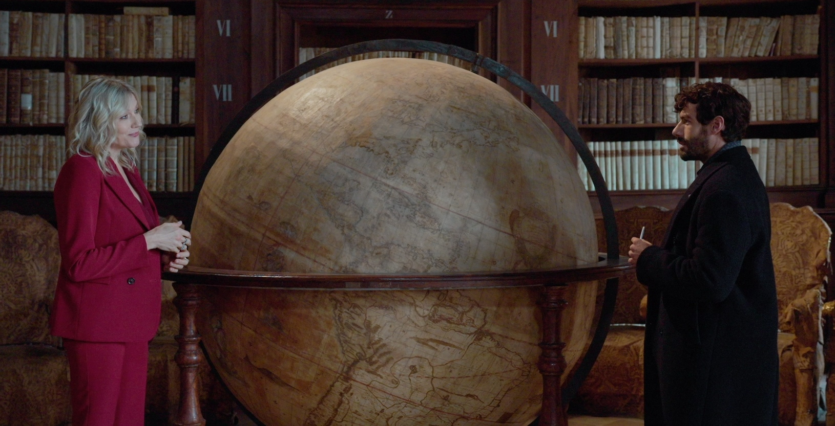 Natasha Stefanenko e Enrico Oetiker durante le riprese nella Biblioteca di Fermo
