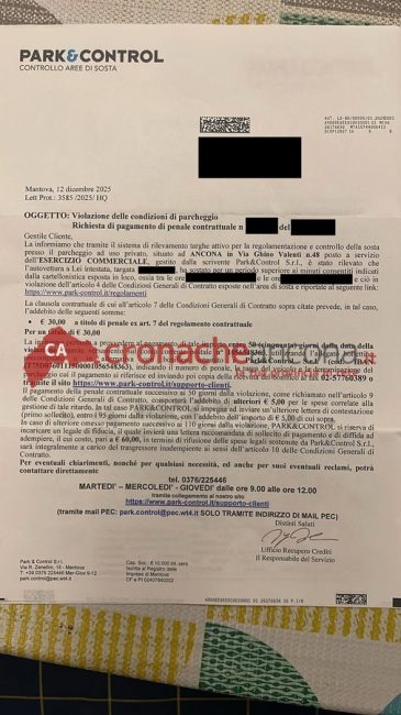Invece, abbiamo deciso di approfondire una situazione che sta diventando comune a molti cittadini: le richieste di pagamento recapitate agli utenti di un polo commerciale alla Baraccola di Ancona, dove un supermercato e un negozio di animali condividono la stessa area di sosta.