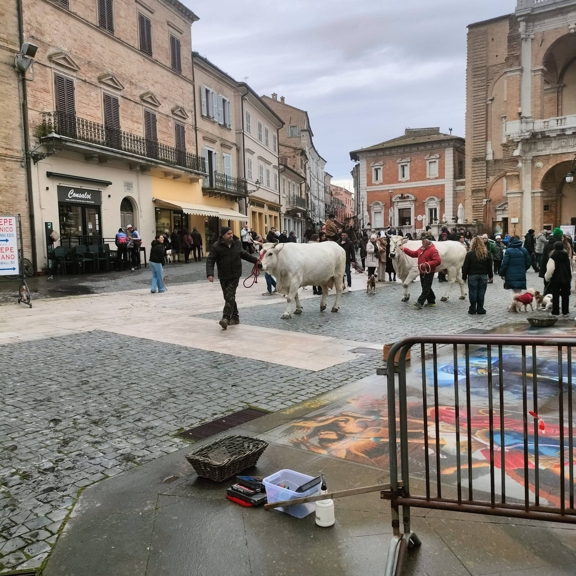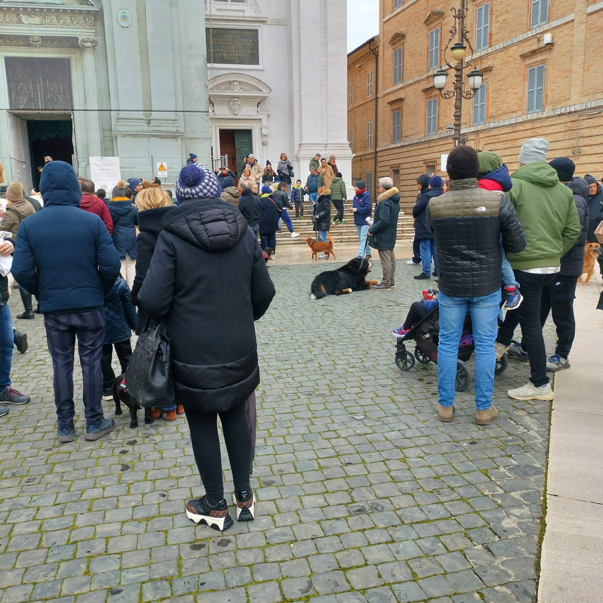 C’erano cani e gatti di ogni taglia presenti con i rispettivi proprietari, ma anche cavalli, mucche e galline. Il cielo grigio e carico di nuvole non ha fermato questa mattina la tradizionale Festa di Sant’Antonio Abate celebrata, nel rispetto della tradizione, con la benedizione degli animali in piazza del Santuario a Loreto. Come dimostrano le foto grafie scattate da Iryna Zaburko in tanti hanno preso parte alla cerimonia sul sagrato della Basilica della Santa Casa.