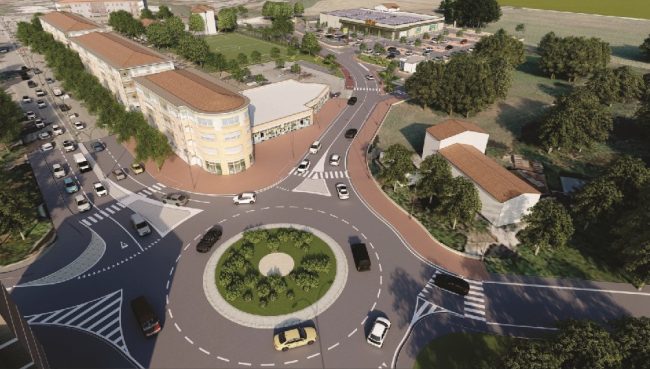 Il rendering del progetto di riqualificazione del fabbricato dismesso nell’area del Tornabrocco di Jesi, Ecco coem sarà realizzata la nuova rotatoria