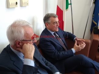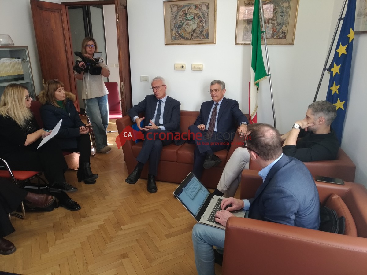 A sinistra il presidente della Corte Luigi Catelli e a destra il procuratore generale della Corte d’appello di Ancona Roberto Rossi durante la conferenza stampa