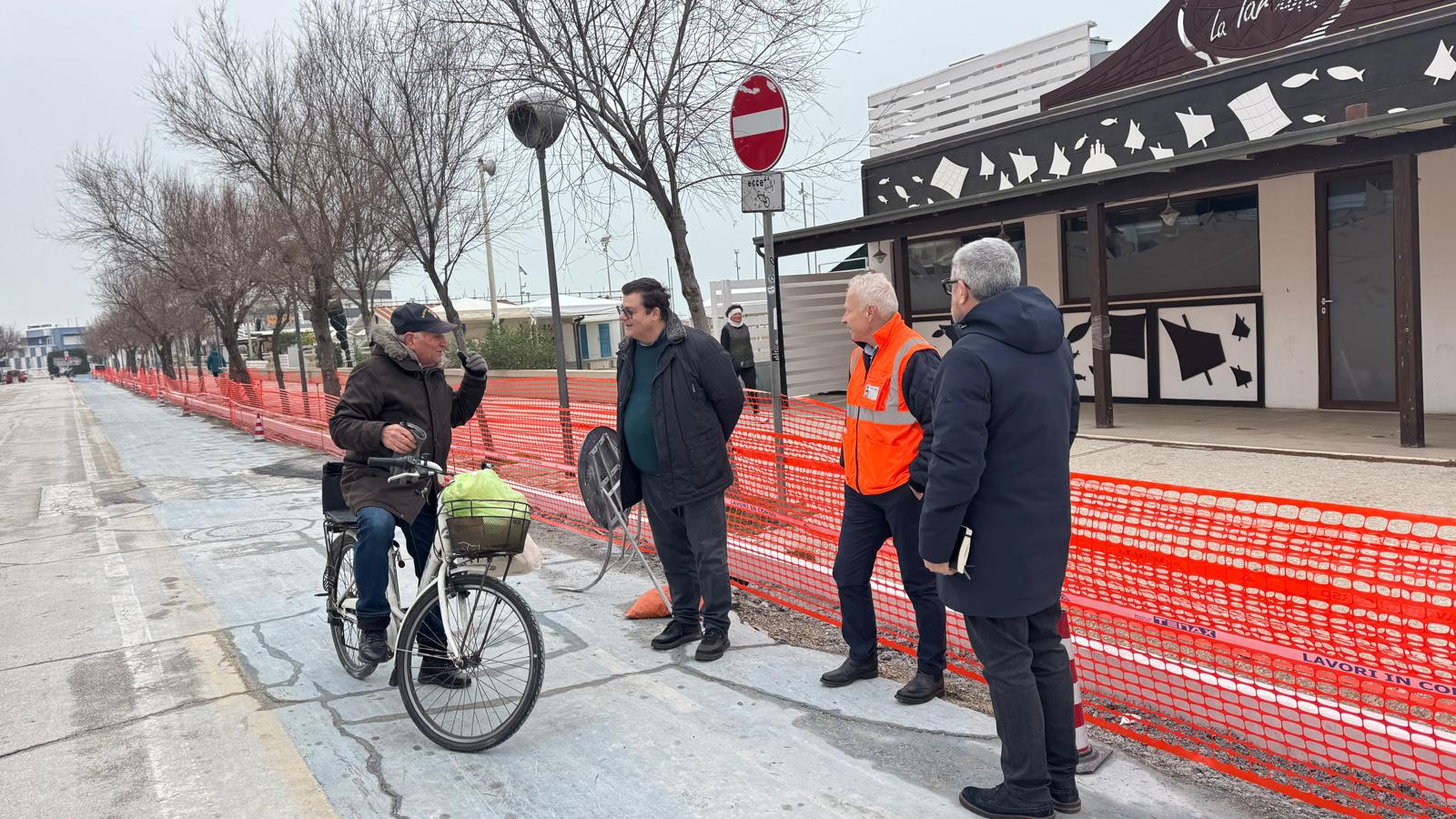 Sopralluogo del sindaco Olivetti e dell’assessore Regine, insieme al personale dell’Ufficio tecnico, nel cantiere del lungomare Marconi che da lunedì chiuderà al traffico.