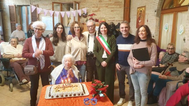 Ha festeggiato 106 anni Teresa Sinigagliesi e il regalo più bello è arrivato da Marco Santini, compositore e violinista che ha dedicato alla ultra centenaria, tra le sue primissime fan sin dagli esordi, un video messaggio. Teresa che tutti chiamano Titina, che gestiva nel centro storico di Osimo un negozio di acconciature per signore, nel giorno del suo compleanno festeggiato nella casa di riposo Fondazione Bambozzi dove vive, ha ricevuto anche la visita della sindaca Michela Glorio che l’ha omaggiata di una pergamena per l’ambito traguardo raggiunto.