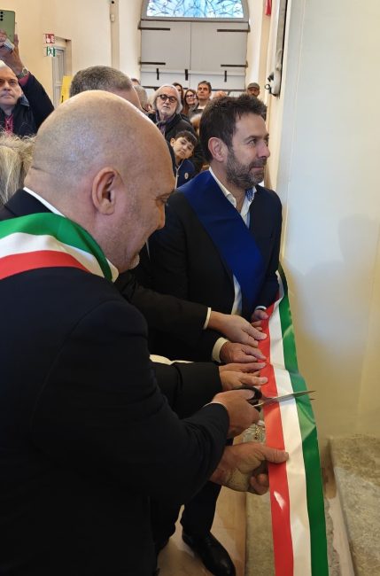 Luca Paolorossi in veste di sindaco e Daniele Carnevali con la fascia di presidente della Provincia, qualche mese fa insieme alla inaugurazione del Museo di Arte e Moda di Filottrano