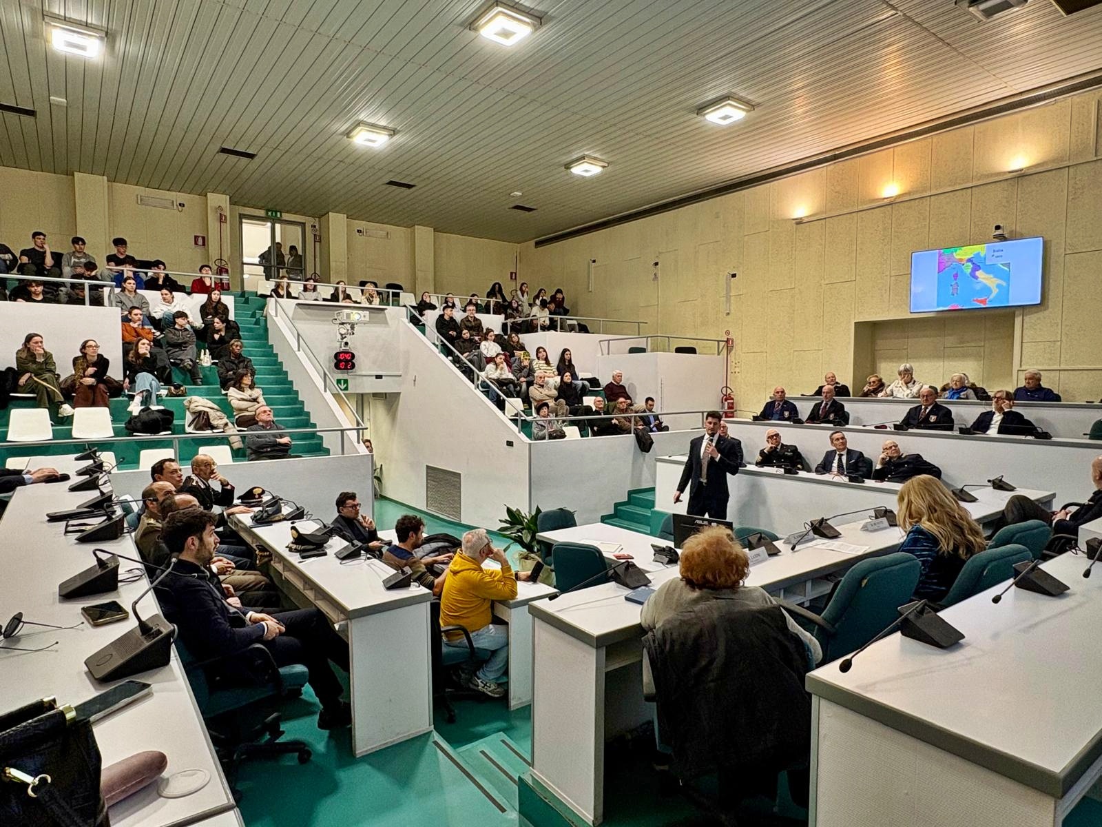 Alle ore 10.15 nella Sala del Consiglio comunale, la giornata è proseguita con un incontro a cui hanno partecipato le autorità civili e militari, le associazioni degli esuli e i dirigenti, i docenti e gli studenti delle quinte classi delll’Istvas Istituto Tecnico Vanvitelli Angelini Stracca e del Liceo Artistico Mannucci. Dopo i saluti del vice sindaco di Ancona Giovanni Zinni, l’intervento del coordinatore regionale per le Marche dell’Unione degli Istriani Emanuele Piloni che ha narrato le vicende storiche delle terre istriano-dalmate a partire dall’antichità e fino al dopoguerra, le vicende relative alle persecuzioni, il dramma delle foibe e dell’esilio. A seguire, da parte dell’assessore alle Politiche Educative, Antonella Andreoli, la presentazione del Bando di concorso “Il Giorno del Ricordo in memoria dei martiri delle foibe e dell’Esodo degli istriani, fiumani e dalmati”.
