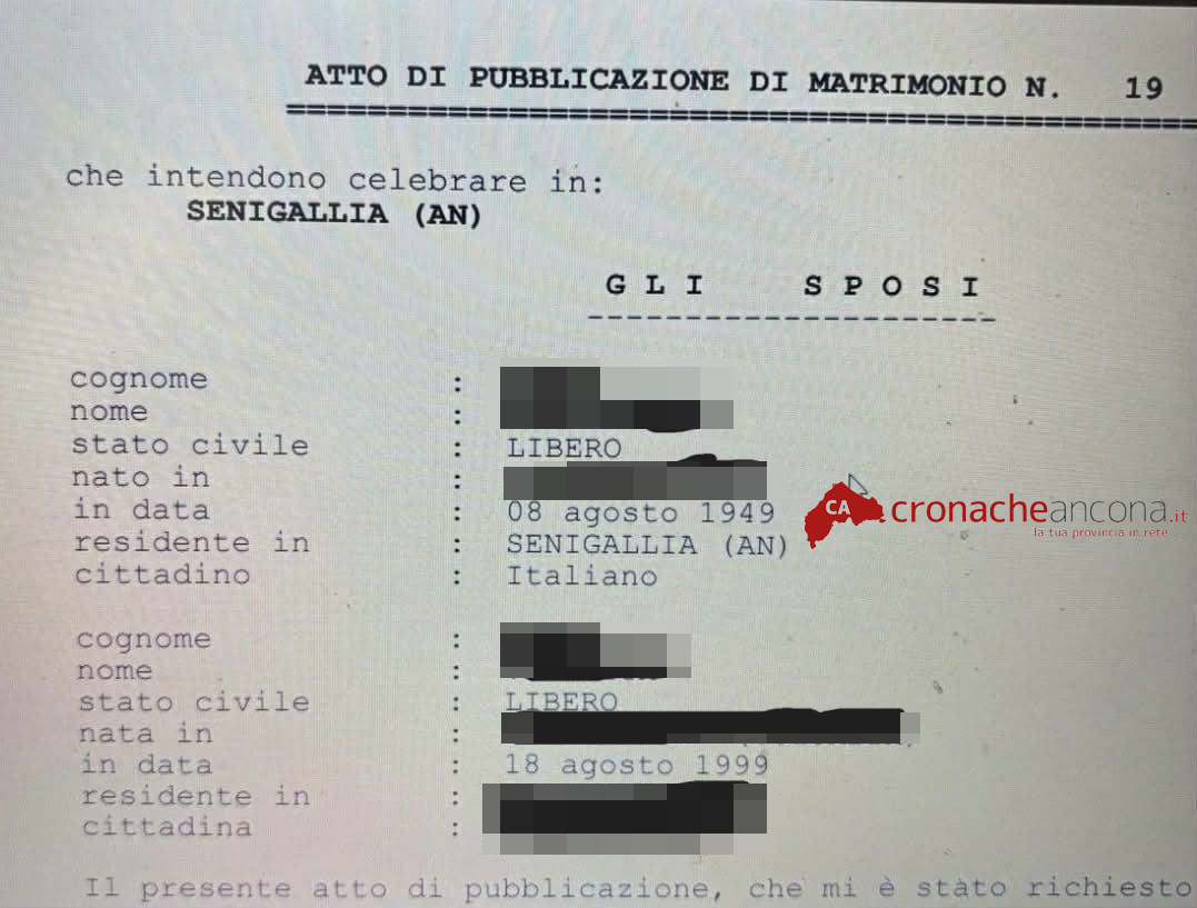A Senigallia l’amore è da record. Lo era stato nel 2008, quando nell’ambito del CaterRaduno 100 coppie erano convolate a nozze insieme, lo è ancora ma per ben altri motivi. Tra i numeri del 2025 spiccano due novelli sposi, con mezzo secolo di differenza: 76 anni lui, nato nel 1949, e 26 lei, classe 1999. Qualche malpensante, viste le pubblicazioni all’albo pretorio, le ha segnalate in Commissariato. Lo sposo anziano e italiano, la consorte giovane e straniera. Tutto regolare in realtà. Nessun secondo fine ma solo il più puro dei sentimenti che trionfa e abbatte ogni pregiudizio. Sfonda le barriere degli stereotipi dimostrando che l’amore non ha età.