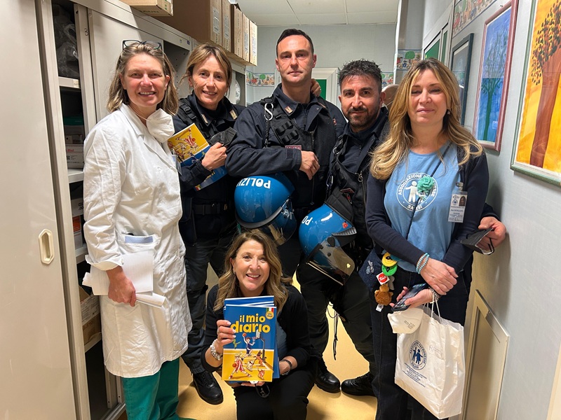Durante l’incontro, i poliziotti hanno consegnato un assegno frutto di una raccolta interna promossa nei mesi scorsi, segno della generosità e dell’impegno del personale della Squadra Mobile, sostenuta con entusiasmo dal dirigente, Vice Questore Aggiunto Piero D’Armi. Non sono mancati gadget istituzionali e agende scolastiche, distribuiti ai piccoli pazienti che hanno voluto ricambiare con disegni colorati, raffiguranti gli agenti in azione, trasformando l’iniziativa in un momento di scambio di affetto e gratitudine.