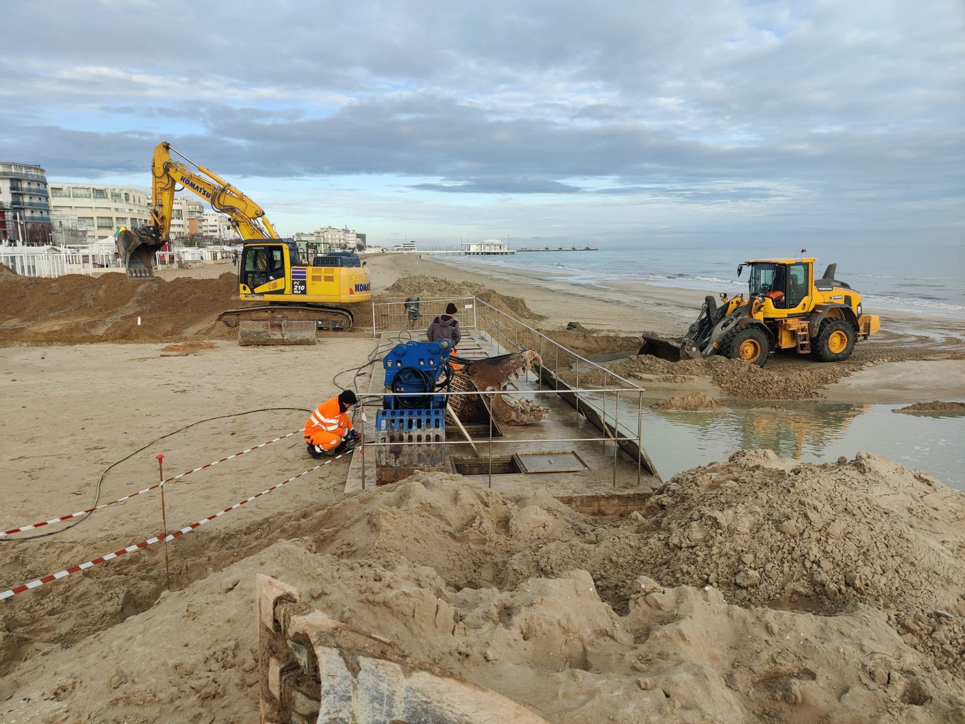 Lavori in corso sulla spiaggia del Ponterosso