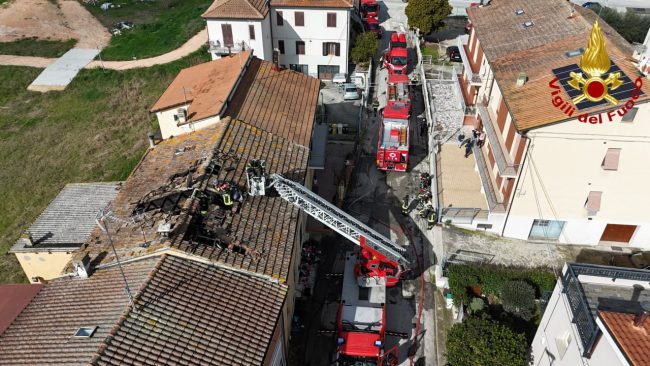 La squadra di Jesi e quella di Ancona, intervenute con sei automezzi tra cui un’autoscala, hanno provveduto allo spegnimento dell’incendio e alla messa in sicurezza dello stabile.