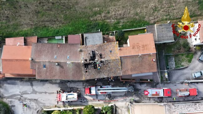 L’evento ha causato danni al tetto e ai locali sottostanti. Non si registrano persone coinvolte.