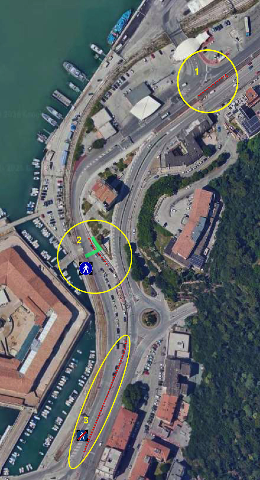 L’ordinanza dispone, nel dettaglio, l’installazione di dissuasori sul lato destro della carreggiata in prossimità del varco Da Chio, lungo via Banchina Nazario Sauro in ingresso al porto, nei pressi delle mura sotto Porta Pia, e nel tratto tra l’attraversamento ferroviario e l’ingresso al parcheggio della Mole Vanvitelliana. Cordonature e paletti visibili anche di notte, che saranno integrati, nella prima area, da catene catarifrangenti per impedire il transito laterale non autorizzato di bici e monopattini. A tutto questo si aggiunge la necessità di convogliare i pedoni verso Largo Caduti sul Mare/Porta Pia attraverso il marciapiede esistente, l’attraversamento pedonale e le scale, evitandone il passaggio degli stessi lungo la carreggiata di via Banchina Nazario Sauro con particolare riferimento ai tratti sprovvisti di marciapiedi. Anche in questo caso sarà installata apposita segnaletica verticale.