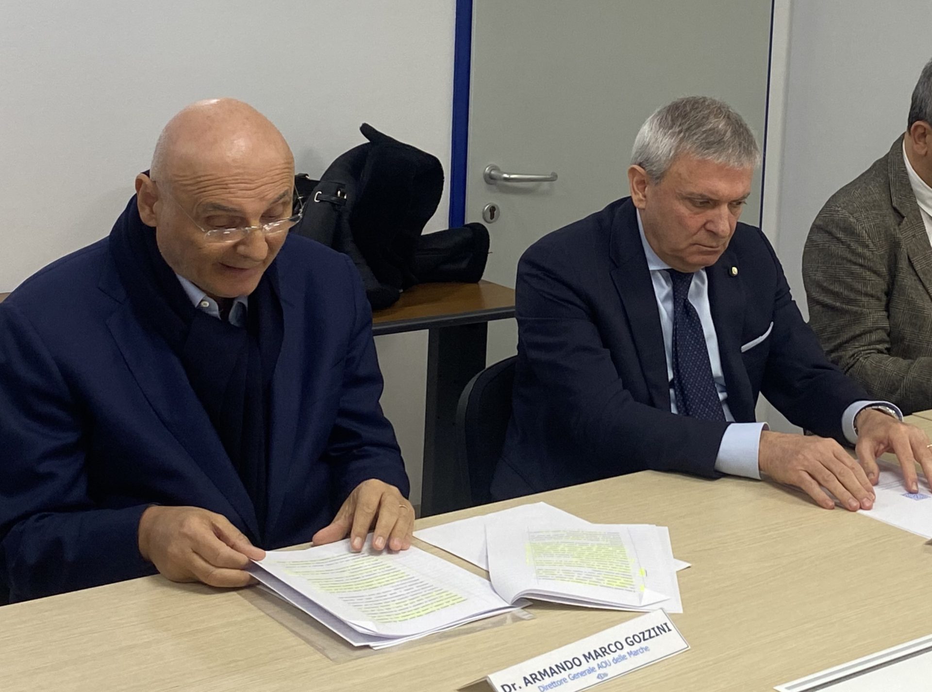 «Diamo il via a un protocollo operativo articolato e strutturato molto importante – ha detto il dg dell’Azienda Ospedaliero Universitaria delle Marche, Armando Marco Gozzini – I fattori in campo adesso sono di grande rilievo, un mix tra tecnologia e deterrenza, da telecamere e sensori alla presenza del posto di polizia, delle guardie giurate e di quelle antincendio. Vorrei sottolineare la capillarità del sistema di allerta rapida direttamente con la Questura che garantisce una sicurezza integrata sempre maggiore». Il direttore amministrativo e quello sanitario di Aoum, Cinzia Cocco e Claudio Martini, hanno curato la parte preparatoria del protocollo attraverso il fitto dialogo con i rappresentanti sindacali sotto vari profili, tra cui la questione della privacy. L’altra metà centrale nella firma del protocollo di sicurezza nei Pronto Soccorso aziendali è quella rappresentata dalla Polizia di Stato.