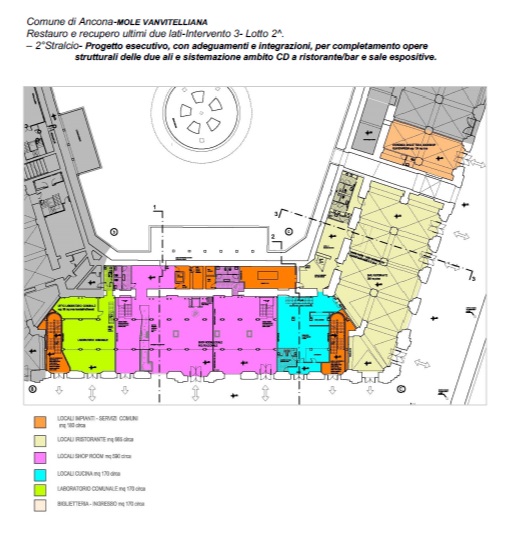 Dopo il recupero delle ali della Mole lato Mare, lato Porta Pia parte sinistra, lato Rivellino e lato Mandracchio, destinati principalmente a funzioni culturali e istituzionali, il nuovo intervento punta a completare gli spazi per attività espositive temporanee nella parte esterna sinistra dell’ala Porta Pia e a realizzare uno spazio caffetteria-bar-ristorante al piano terra, con cucina e locali per gli impianti, in modo da rendere il complesso funzionale e accessibile.