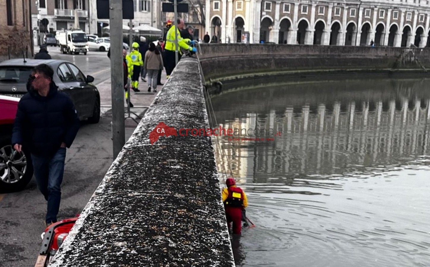 Immediata la chiamata al 112 e l’arrivo sul posto di ambulanza e automedica. Immediato anche l’intervento dei vigili del fuoco e dei sommozzatori. Presenti anche le pattuglie della polizia e i militari della vicina caserma della Guardia di Finanza.