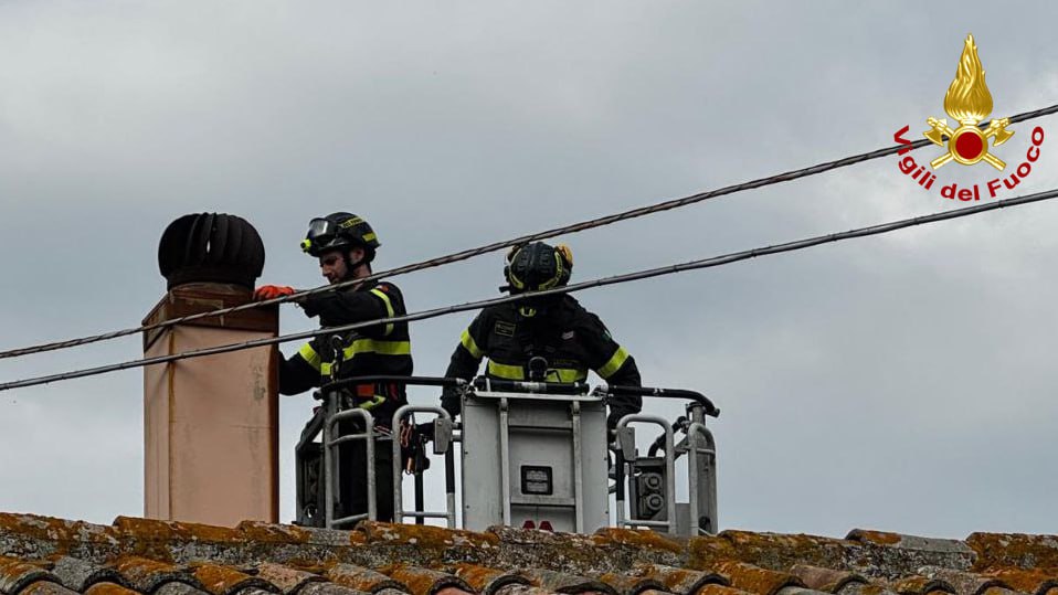 Intervento dei vigili del fuoco questa mattina poco dopo le 8 nella frazione di Roncitelli per la messa in sicurezza di un comignolo pericolante.