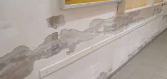 I distacchi di intonaco documentati al Corridoni campana da Progetto Civico Osimo 2030