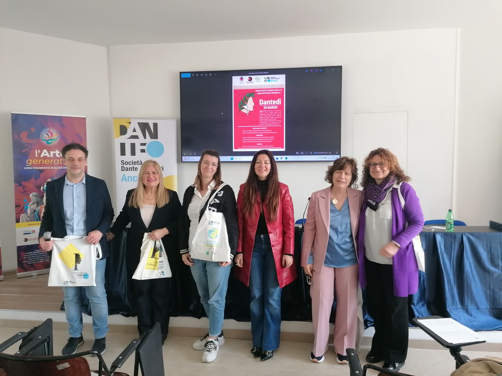 Presso l’Aula magna del Liceo Artistico Mannucci, sono stati coinvolti gli studenti del Mannucci e del Galilei in una lezione che approfondisce le tematiche spirituali, filosofiche e scientifiche di quel periodo storico che aprirà le porte al Rinascimento italiano e al mondo moderno. Dopo i saluti istituzionali da parte del Direttore del Liceo Luca Serafini e dell’Assessore alle Politiche Educative, Antonella Andreoli, la Presidente del Comitato della S.D.A. di Ancona, Giuliana Poli, ha tenuto un’interessantissima ed appassionante lezione dal titolo: “Da Beatrice a Madonna Povertà: Dante Giotto e San Francesco”, svelando l’aspetto iconografico e iconologico della parte di affresco della Basilica Inferiore di San Francesco in Assisi: Madonna Povertà di Giotto.