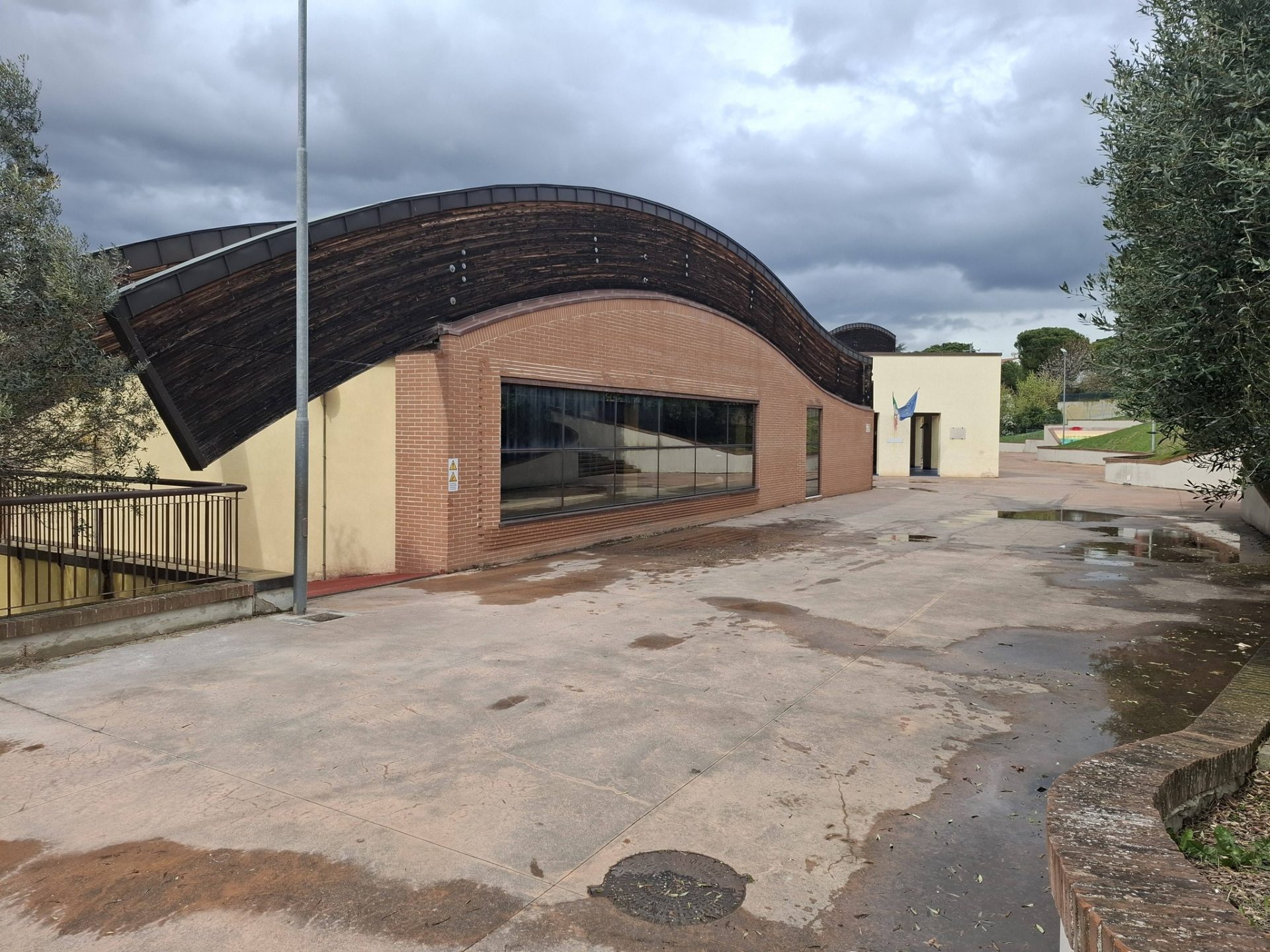 La palestra e l’ala che accoglie le scuole medie del plesso scolastico ‘Arcobaleno’ di San Biagio di Osimo
