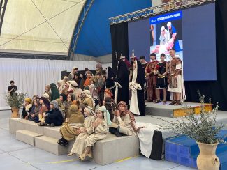 Tensostruttura gremita e commozione per la quarta edizione di ‘Grandi come bambini’, la Passione di Gesù raccontata dai più piccoli che si è svolta ieri pomeriggio a Villa Musone di Loreto. Si è dato inizio così ai riti della Settimana Santa nella Città mariana, in attesa che nella serata del Venerdì Santo (3 aprile, ndr) vada in scena ‘La morte del Giusto’, ormai storica ricostruzione delle ultime ore di Cristo giunta alla 49° edizione. E proprio da una ‘costola’ della suggestiva rappresentazione ‘maggiore’, oggi candidata al riconoscimento di Patrimonio immateriale dell’Unesco, è nata l’idea di affidare anche alla sensibilità e allo sguardo dei più piccoli il racconto di uno dei passaggi più significativi della fede cristiana.
