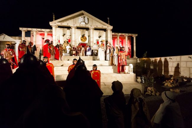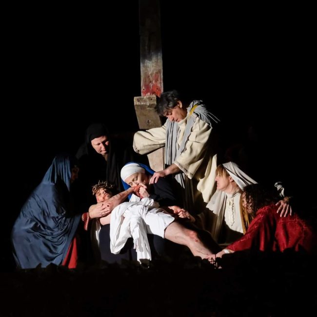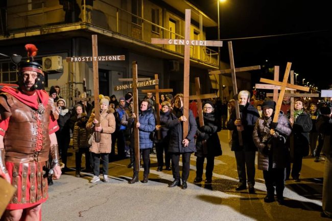 Intanto, venerdì prossimo va in scena l’edizione numero 49, che di fatto dà anche l’avvio ad un anno speciale: quello del 50esimo, che cadrà nel 2027 e che sarà preceduto ed accompagnato da una serie di importanti iniziative che gli organizzatori stanno già programmando. ‘La morte del Giusto’ è un avvenimento che coinvolge l’intera comunità lauretana di Villa Musone e non solo: volontari che per mesi lavorano al suo allestimento tra attori, costumisti, attrezzisti, volontari per la sicurezza. Oggi la Rappresentazione fa parte del circuito Europassione per l’Italia ed è universalmente riconosciuta come una delle più suggestive delle Marche per il realismo dei costumi e la complessità delle ambientazioni, che dall’area retrostante la tensostruttura parrocchiale salgono fino al Golgota allestito nella collina ai piedi della Santa Casa: il processo nel Sinedrio, la presentazione a Pilato, la condanna di Gesù, il Calvario e la Crocifissione, per concludersi poi con la riflessione moderna su quelli che sono i ‘calvari’ dell’Umanità odierna.