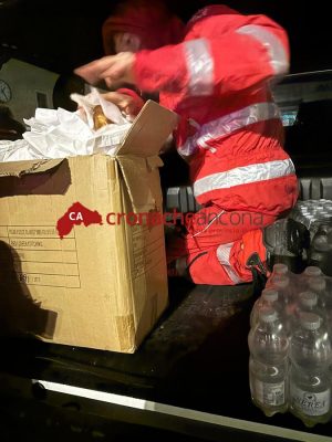 La Protezione Civile ha garantito la distribuzione di acqua, mentre la Croce Rossa ha fornito coperte e teli termici per contrastare il freddo notturno, oltre a sacchetti con generi alimentari di prima necessità.