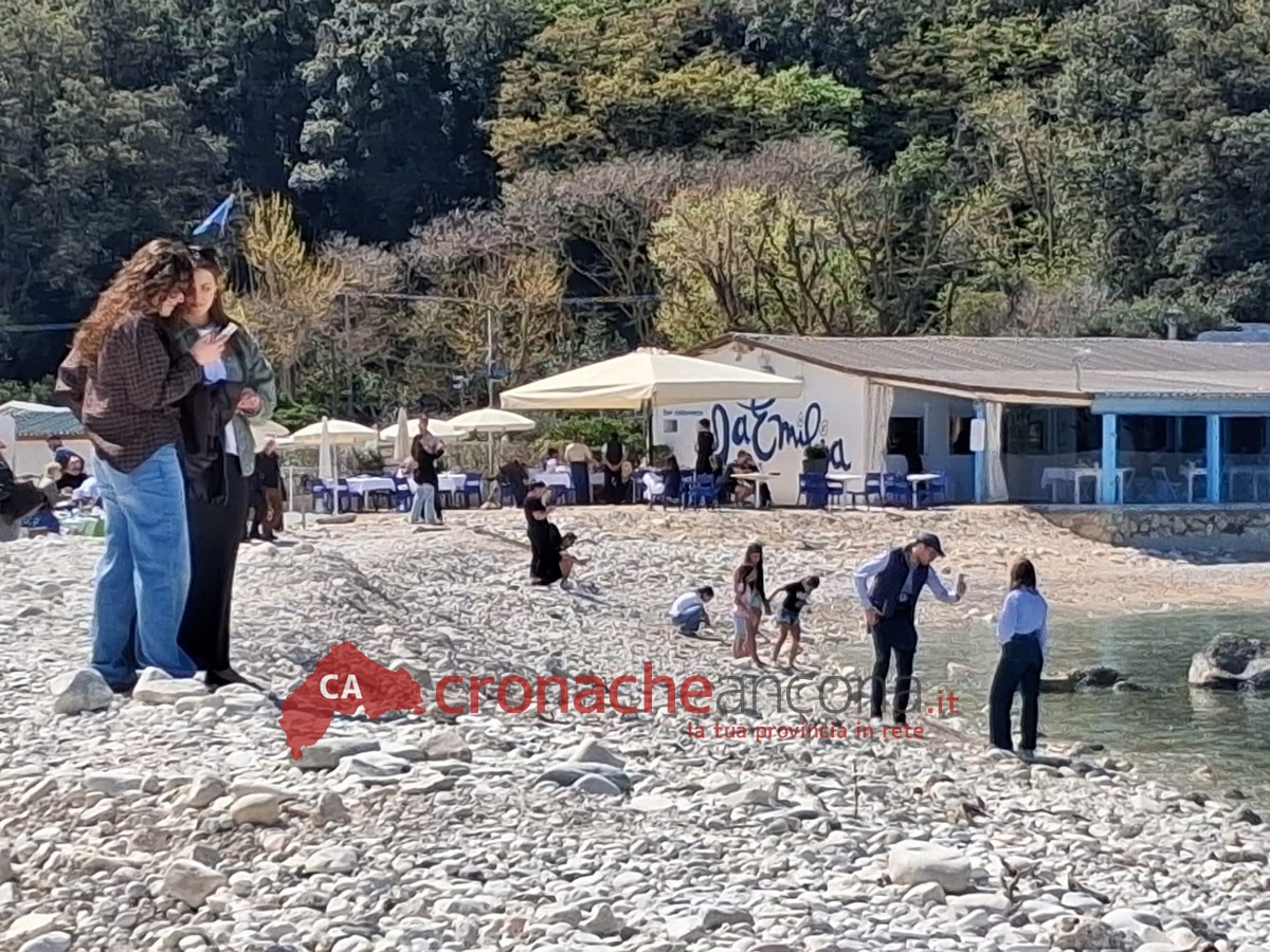 Sole pieno, aria tiepida e primi asciugamani stesi sulla ghiaia: a Portonovo la Pasqua ha il sapore, se non dell’estate anticipata, della primavera inoltrata, cosa che negli ultimi giorni sembrava ancora un sogno.