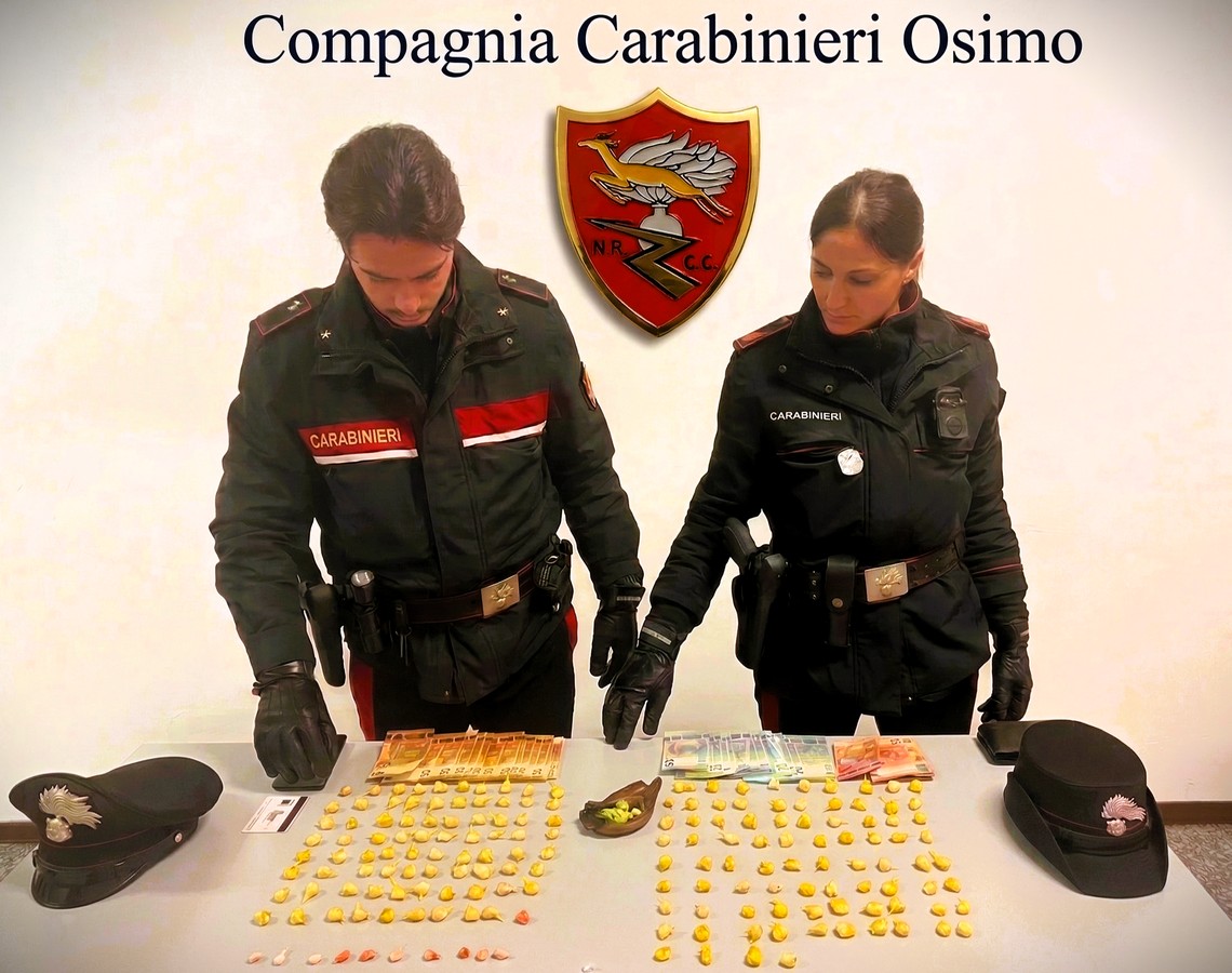 Un 24enne albanese è stato arrestato in flagranza dai carabinieri del Nucleo Operativo e Radiomobile della Compagnia di Osimo per detenzione ai fini di spaccio di sostanza stupefacente.