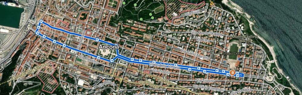 Nel capoluogo dorico, il punto di ritrovo per i partecipanti sarà lo Stadio Dorico. Il tracciato prevede un circuito di 5 km da ripetere due volte per la competitiva (un solo giro per la non competitiva), con partenza dal piazzale antistante lo stadio.